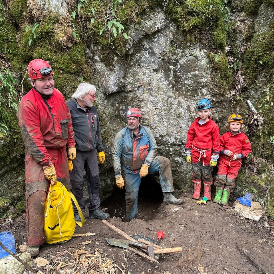 Kopání v klasické žlebové jeskyni.